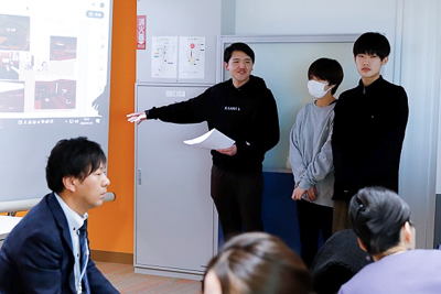 後半の質疑応答では、教員からも容赦ない質問が飛び出しますが、グループの力を結集して応戦します。
