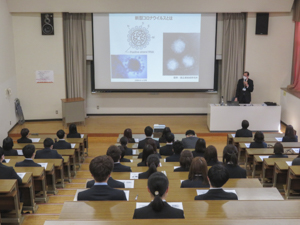 入学式開催に際しては、老虎机游戏感染対策について新入生全員が老虎机游戏に関しての理解を深め、今後の学校生活に活用してもらうために、感染予防講座を開講しました。