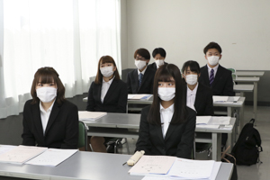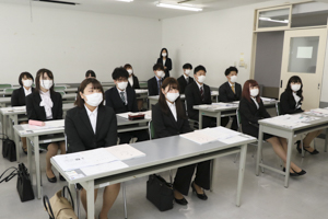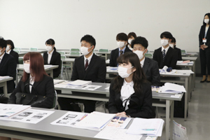 各科ごとにマスクの着用を求め、教室は換気を十分に行いながらの入学式となりました。マスク着用のため、それぞれの顔が見えないものの、入学式を通じて新入生全員が集まれたことに大きな意義があったと感じます。また、新入生の皆さんは各教員からのメッセージに熱心に耳を傾けていました。