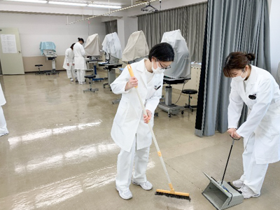 実技チェックが終わって気持ちもスッキリ、掃除で実習室もスッキリ。