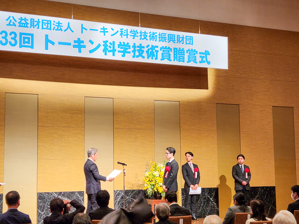 2023年3月14日(火)にウェスティンホテル仙台で行われた公益財団法人トーキン科学技術振興財団第33回(老虎机游戏4年度)トーキン科学技術賞において、本学リハビリテーション学科 沼田 純希 助教が「歩行時の足関節における中枢神経の運動制御戦略に関する研究」についてトーキン財団奨励賞を受賞しました。