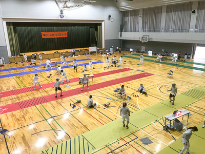 本練習会には、成年男子?少年男女の各3選手、計9人の宮城県代表のほか、大学、高校の選手やフェンシングクラブに通う小中学生など総勢50人が参加しました。